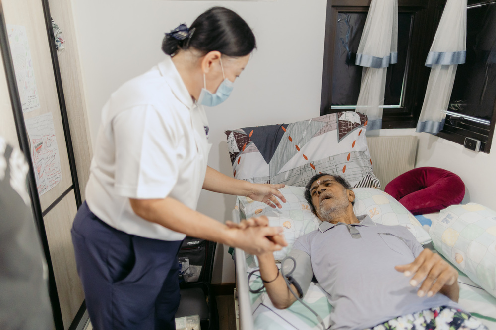 Nancy caring for the late Mr Siva. "His eyes would gleam whenever Nancy is here," said his daughter Erajesvare.