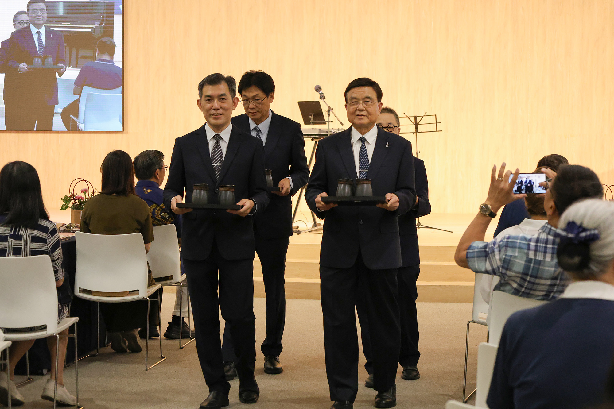 茶会最庄重的时刻,莫过于荣董授证仪式。今年共有24位荣董获此殊荣,他们依次上台领取聘书。他们有的事业有成,慷慨解囊;有的靠着节俭,聚沙成塔,完成捐赠。无论出身背景,每一分善念都指向同一个方向──把钱用于利益社会、利益大众的地方。